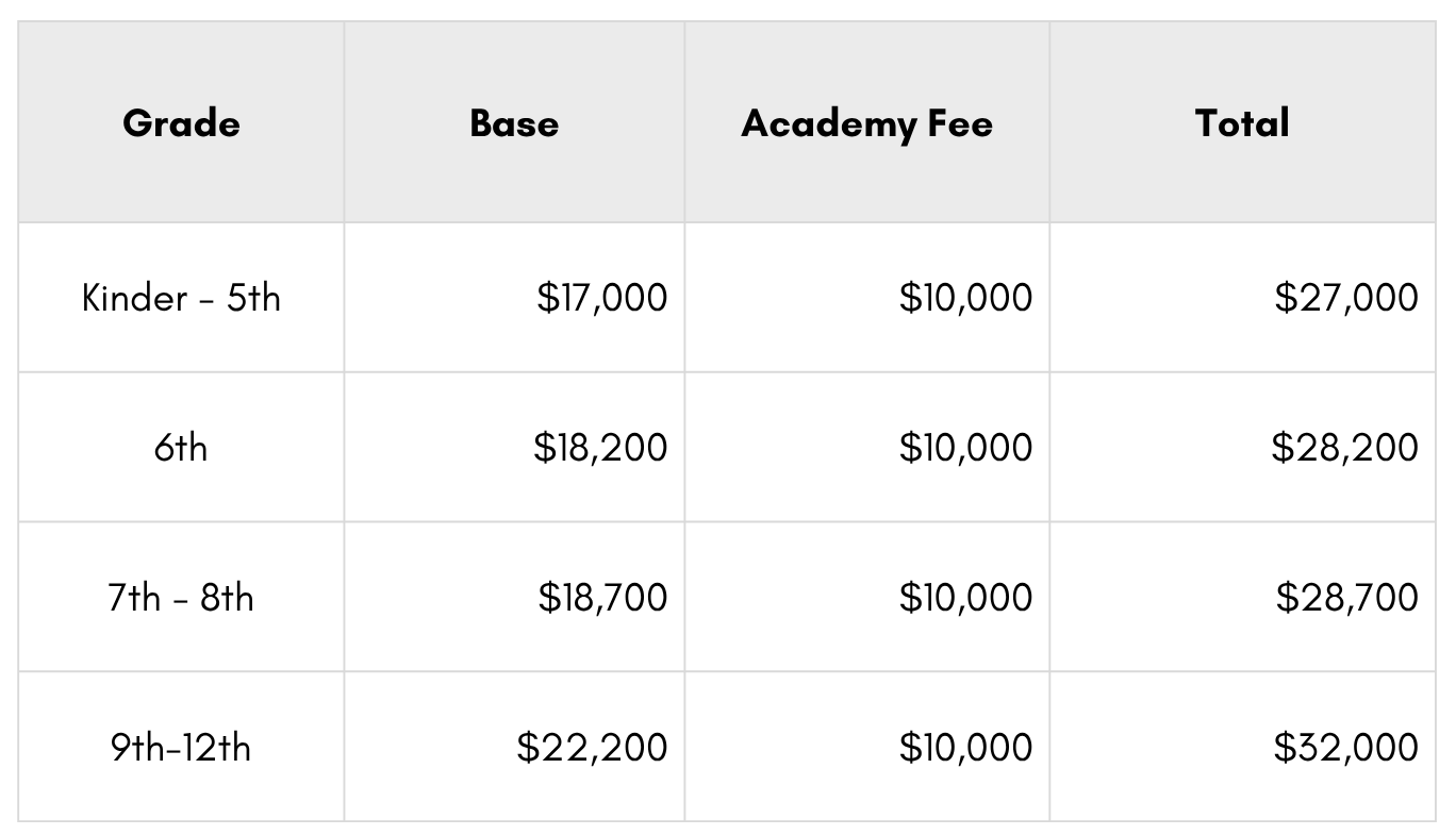 2026-2027 Academy 139 Tuition